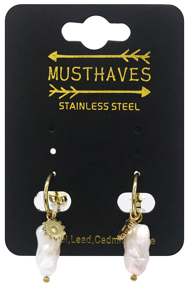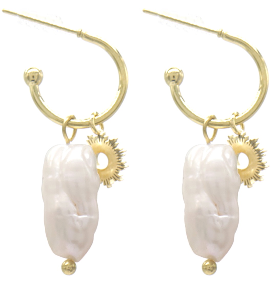 G-C15.2 E031-068G S. Steel Earrings Sun - Freshwater Pearl