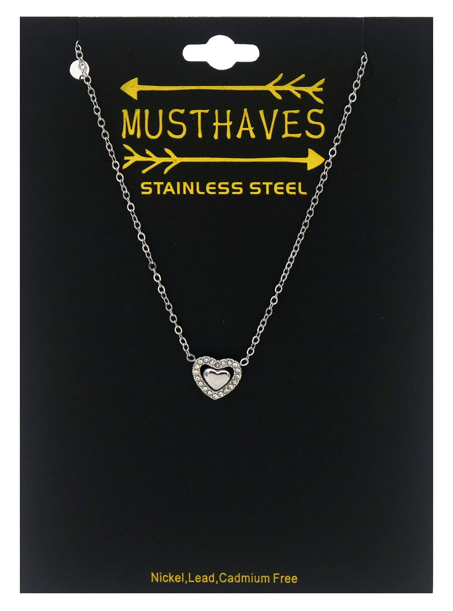G-C18.4 N25106-069S S. Steel Necklace Heart Crystals 40-45cm