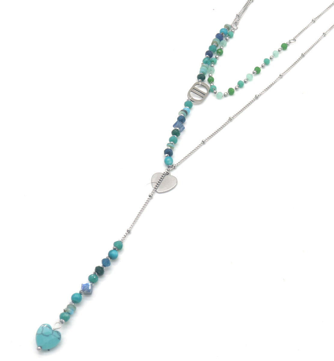 G-D21.1 N221-323S No. 1 S. Steel Necklace Stones Blue