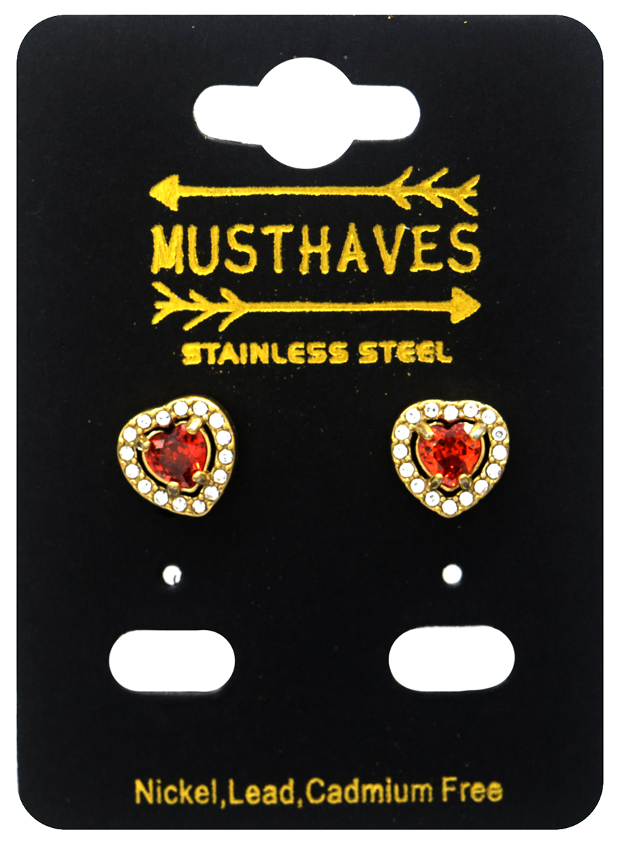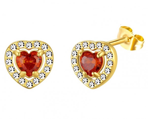 G-E19.4 ES65-099G S. Steel Earrings Heart CZ 10mm Red