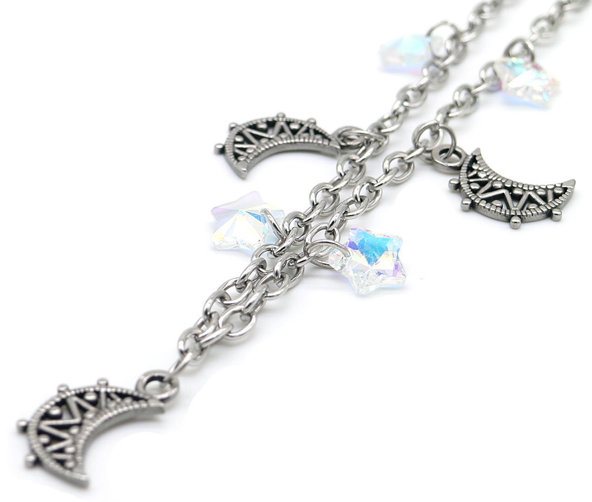 G-E3.2 N2053-001 S. Steel Necklace Moon and Stars 36-39cm For Kids