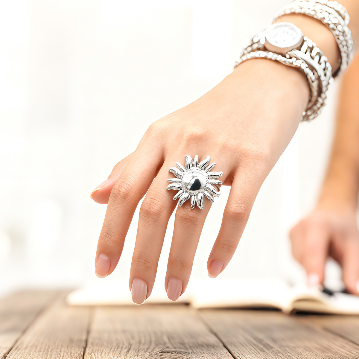 The unique sun motif adds a touch of whimsy and charm, while the adjustable feature ensures a comfortable fit for all finger sizes. Whether you're dressing up for a special event or adding a statement piece to your everyday outfit, the G-F6.2 R2591-058G ring is sure to turn heads.