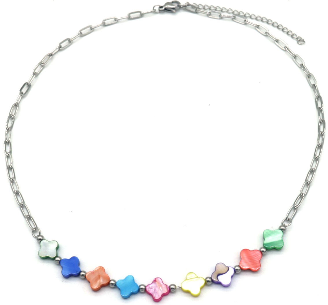 H-A5.1 N823-003S S. Steel Necklace Clovers