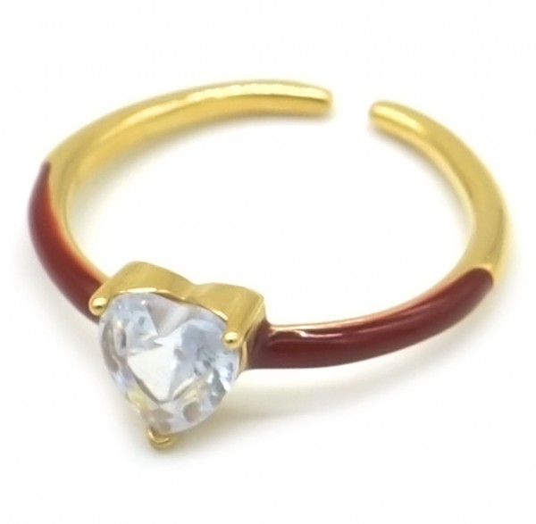 H-A7.4 R221-241G S. Steel Ring CZ Heart Bordeaux Adjustable