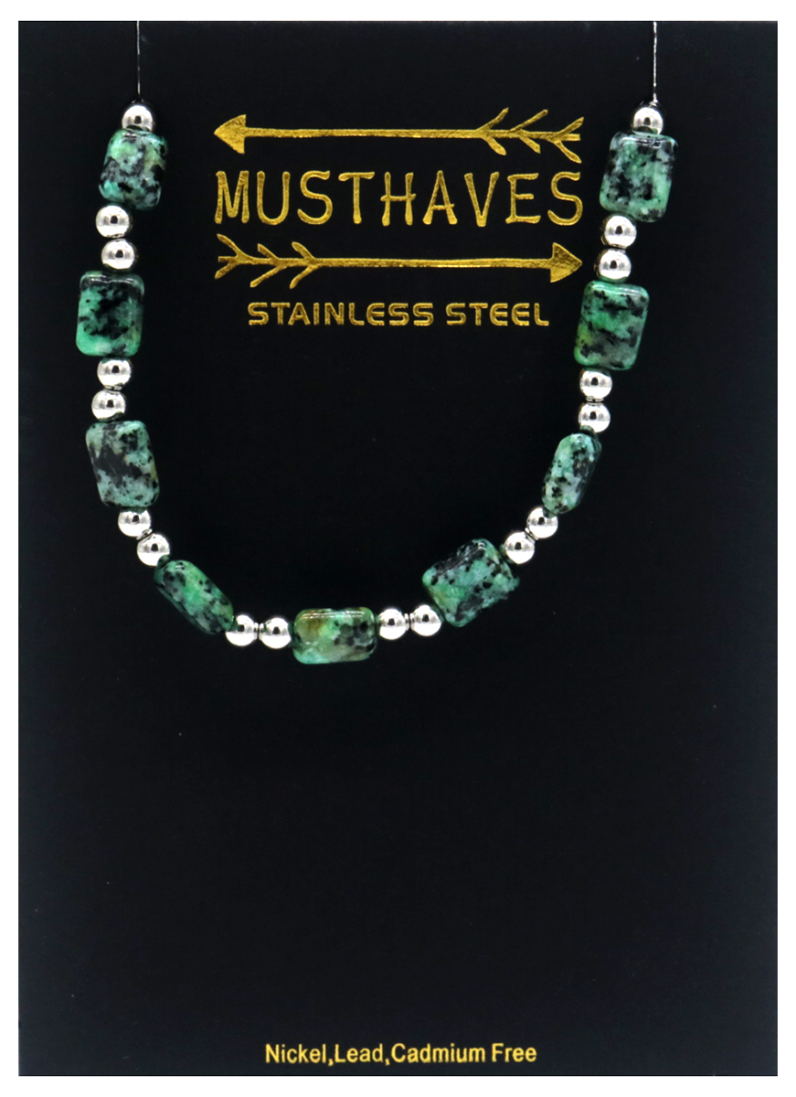 H-B3.2 B062-009S S. Steel Bracelet Dotted Green Stone