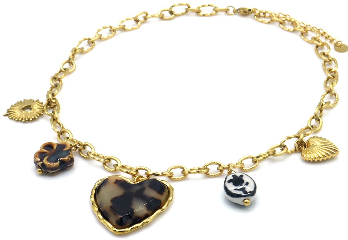Introducing the H-C24.1 N1160-003G Stainless Steel Necklace with XL Charms, a stunning accessory that effortlessly combines elegance and versatility. Crafted from high-quality stainless steel, this necklace is designed to withstand the test of time while maintaining its lustrous shine.