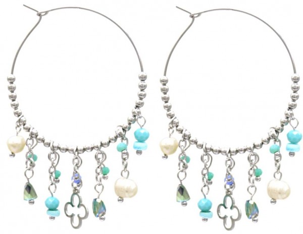 H-C3.2 E221-498 No. 6 S. Steel Glassbead Earrings 4x5.5cm Bl