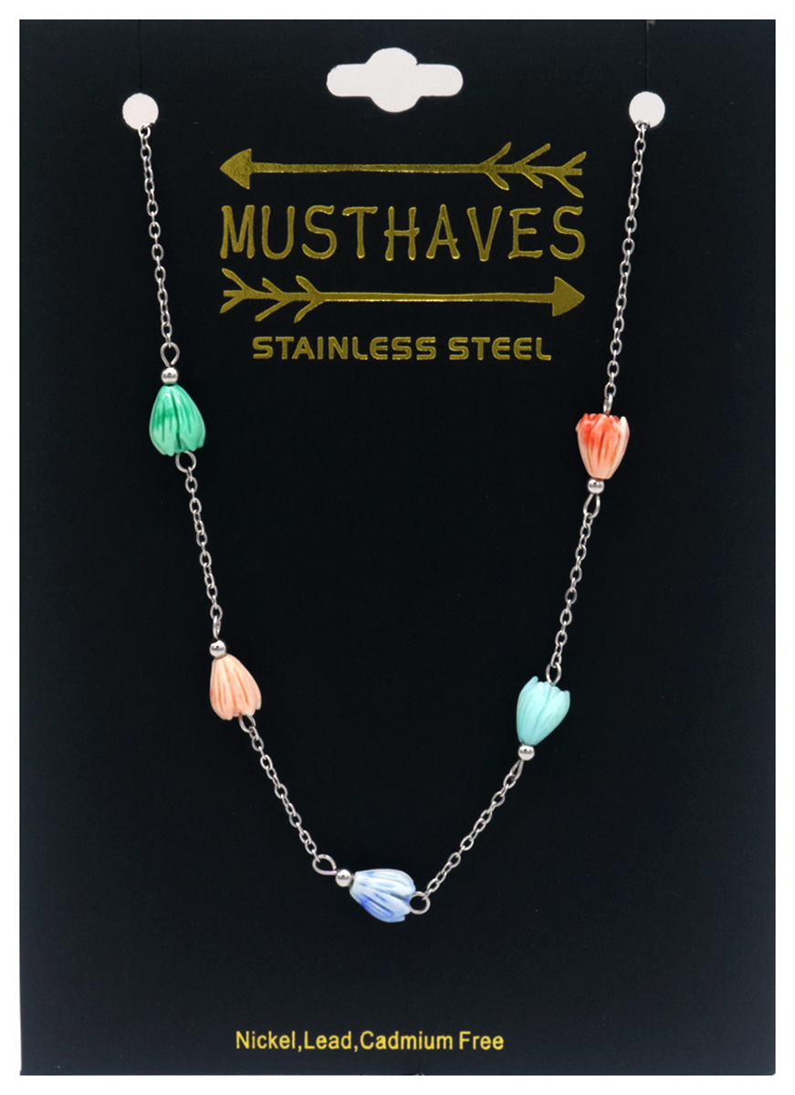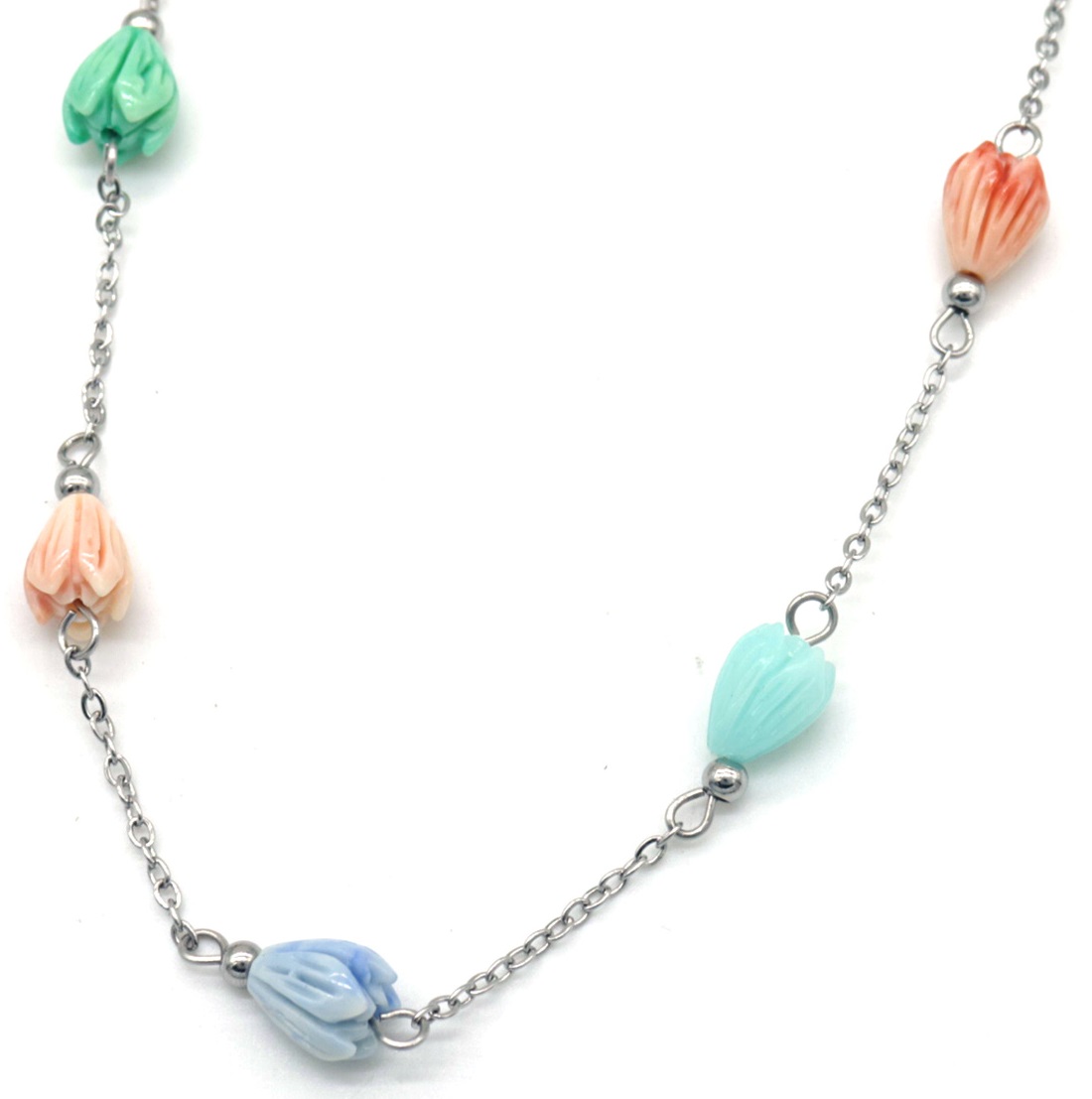 H-C9.3 N823-001S S. Steel Necklace Flowers