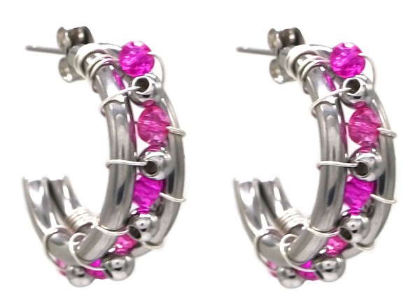 H-E5.4 E221-365S S. Steel Earrings Glassbeads Purple