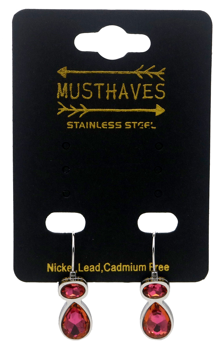 H-E6.1 E25106-042S S. Steel Earrings Crystals 2.5cm Pink