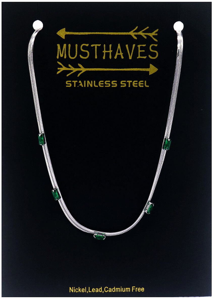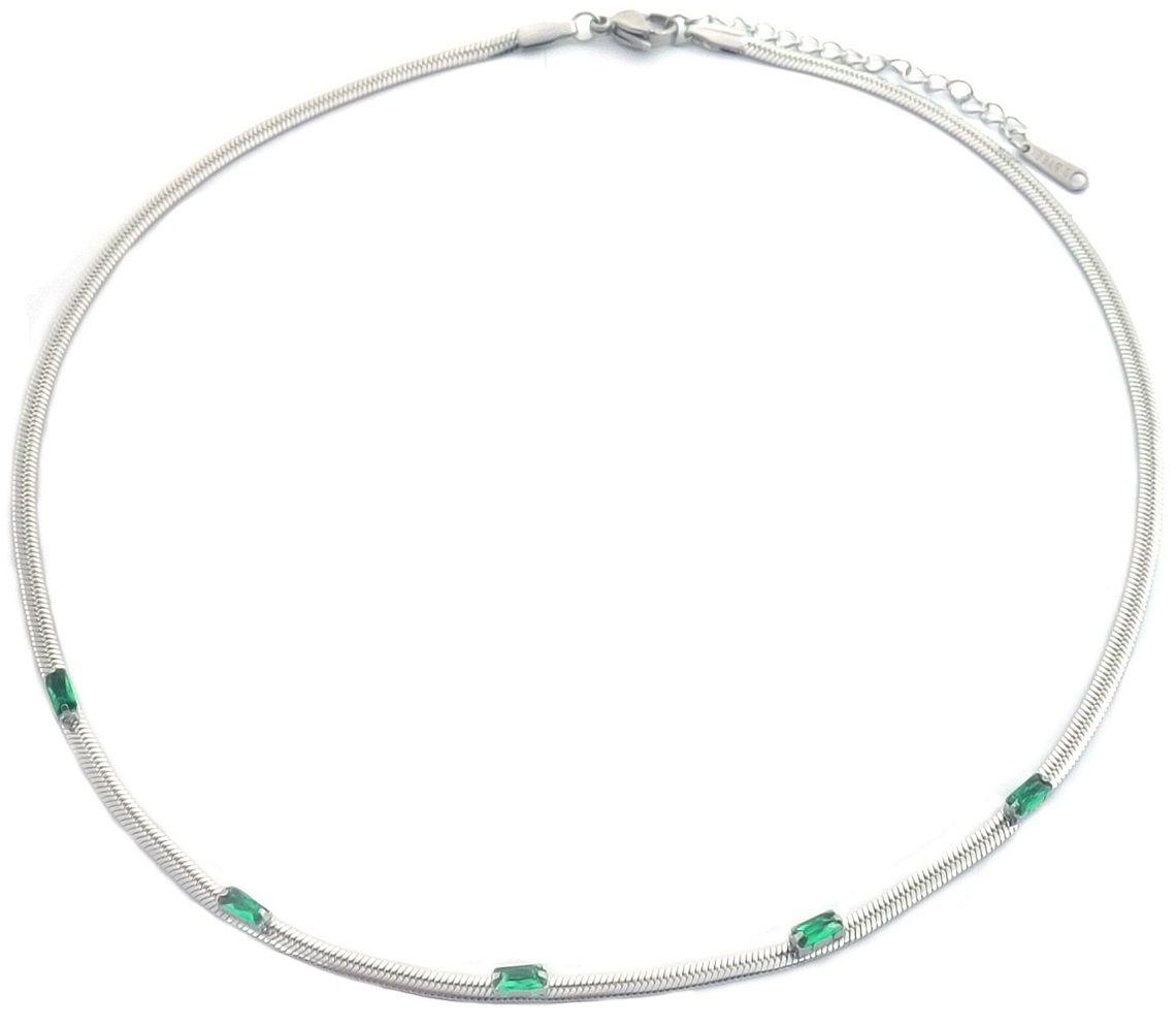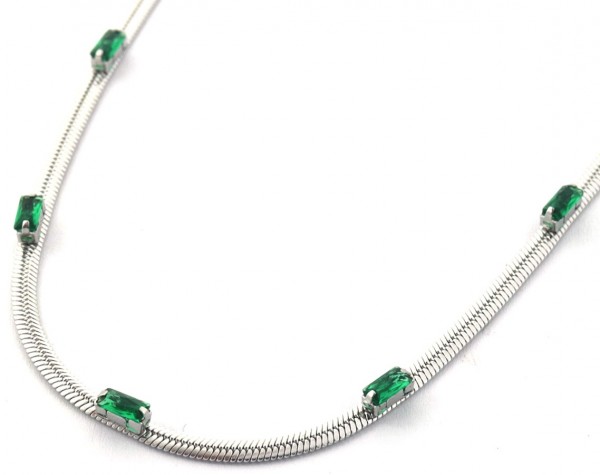 H-F19.3 N090-007S S. Steel Necklace CZ Green 39-44cm