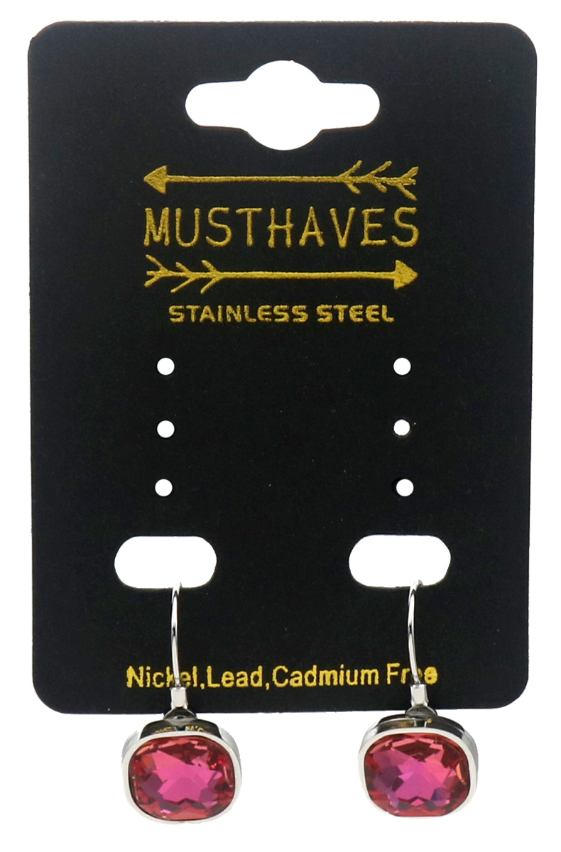 H-F20.5 E25106-075S S. Steel Earrings Crystal 2.5cm Pink