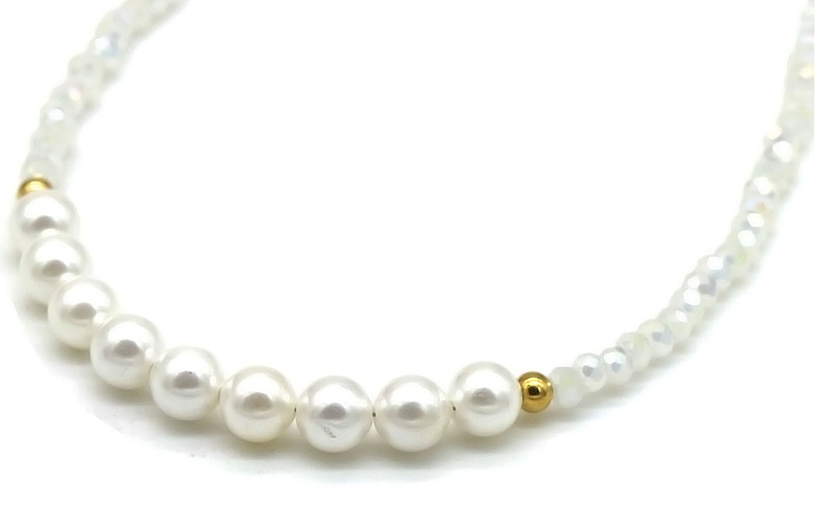H-F9.2 N1659-008 Pearls Faceted Glassbeads 39-44cm White