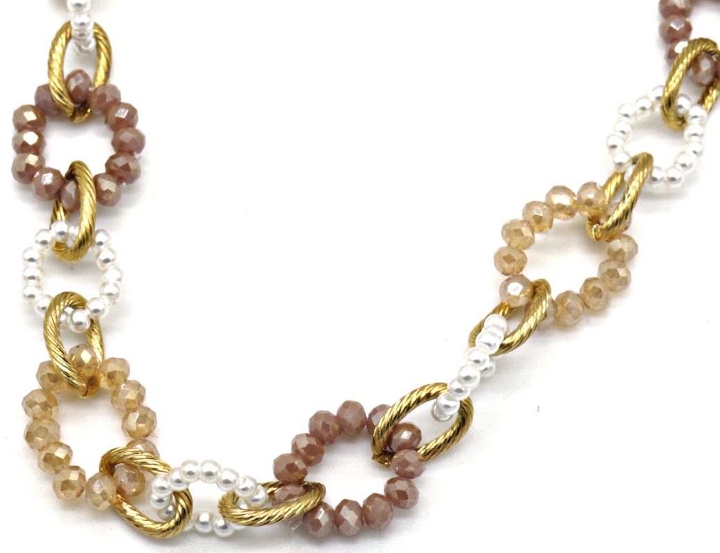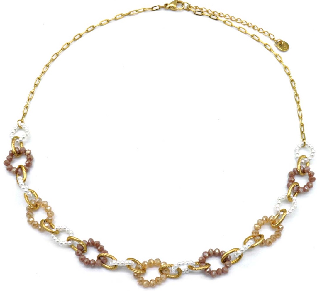 Product information "I-E4.1 N221-384 No. 4 S. Steel Necklace Faceted Glassbeads Brown"