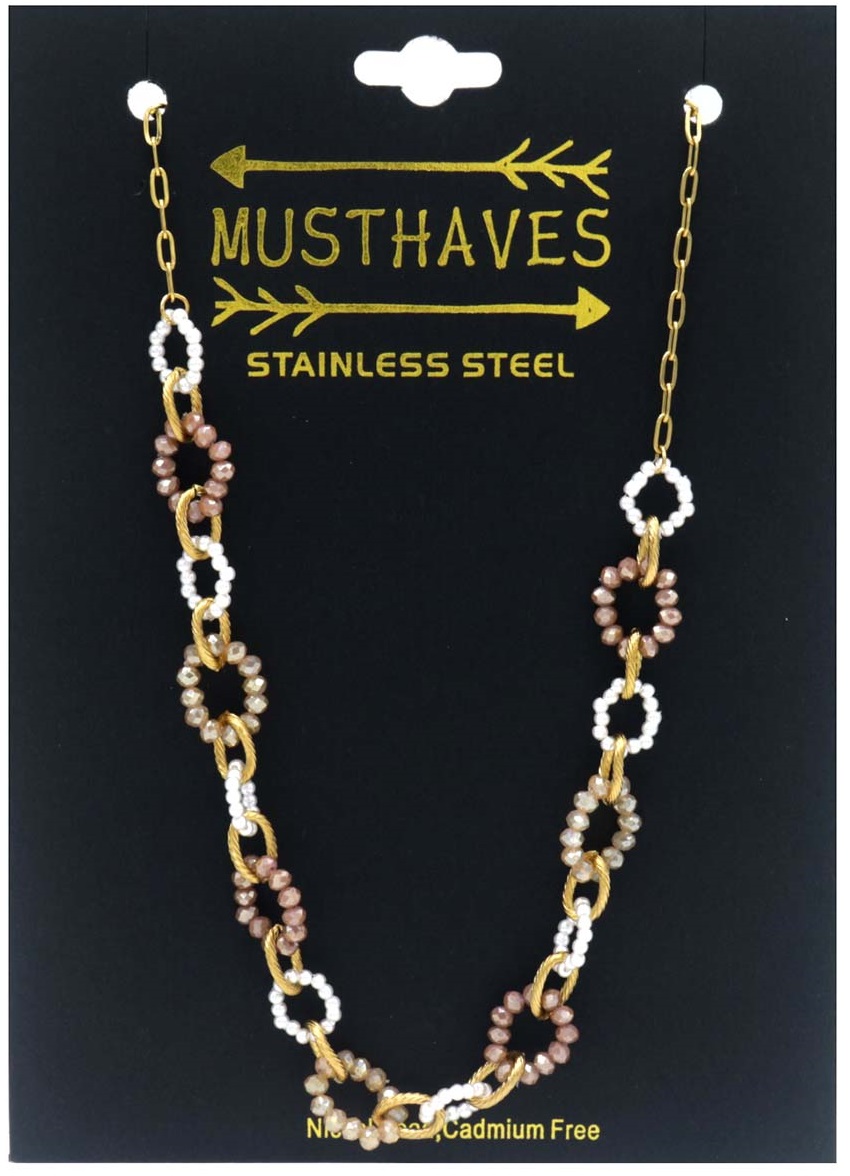I-E4.1 N221-384 No. 4 S. Steel Necklace Faceted Glassbeads Brown