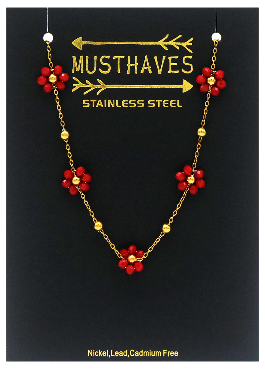 Product information "I-F9.2 B68-002 S. Steel Bracelet Glass Flowers Red"