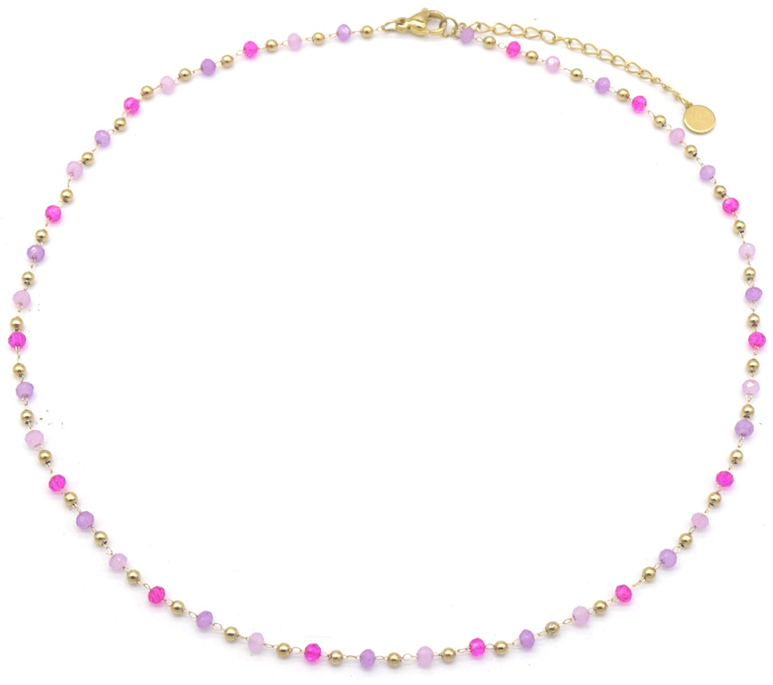 Product information "J-D4.2 N831-006-4 S. Steel Necklace Glass Beads - Purple"