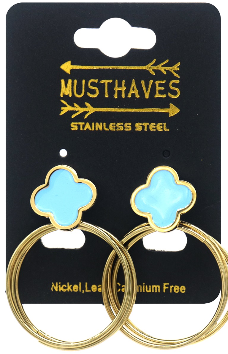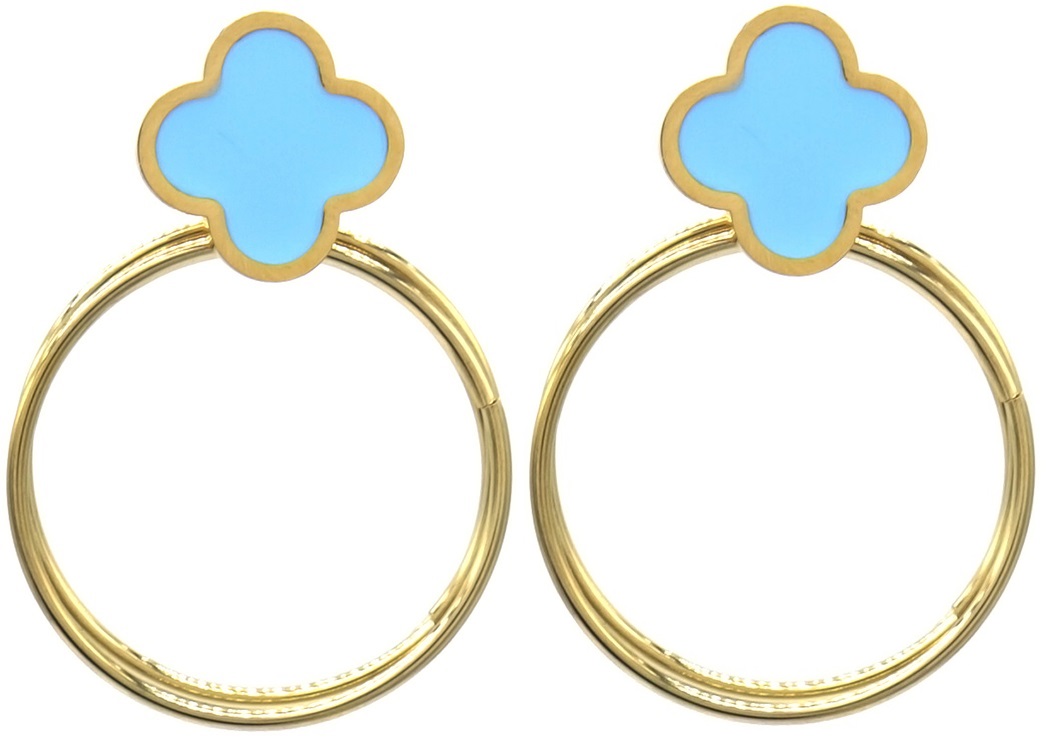 J-F5.2 E831-012-7 S. Steel Earrings Clover 4x3cm Blue