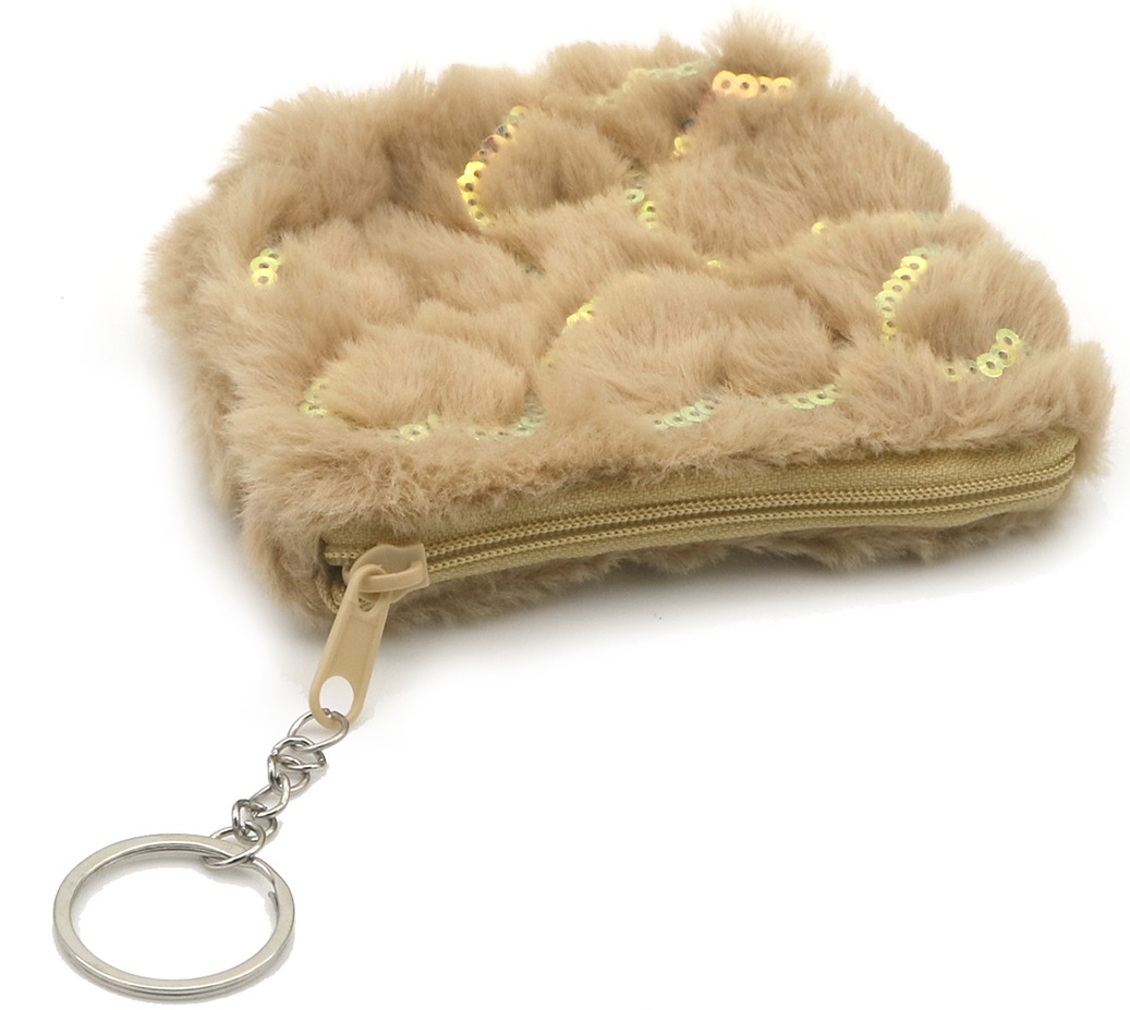 K-B6.1 KY1154-004 Keychain Fluffy Pouch Hearts 12.5x10cm Brown