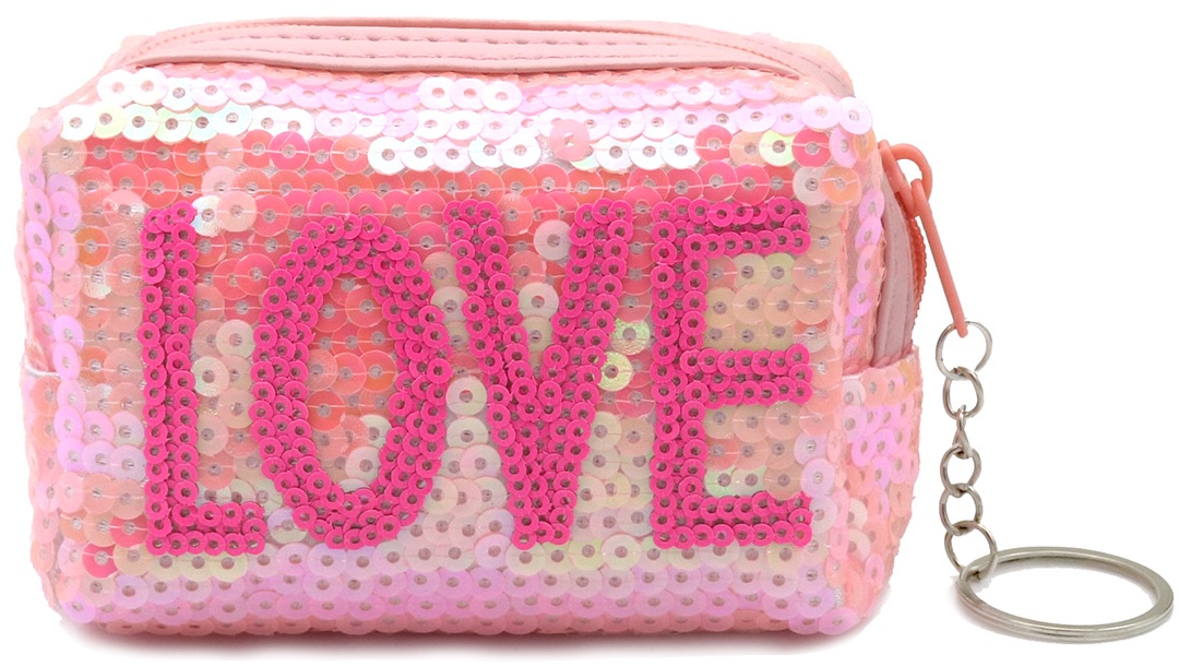 L-B2.2 KY1154-002 Keychain Wallet LOVE Sequins 10x7x4cm Pink
