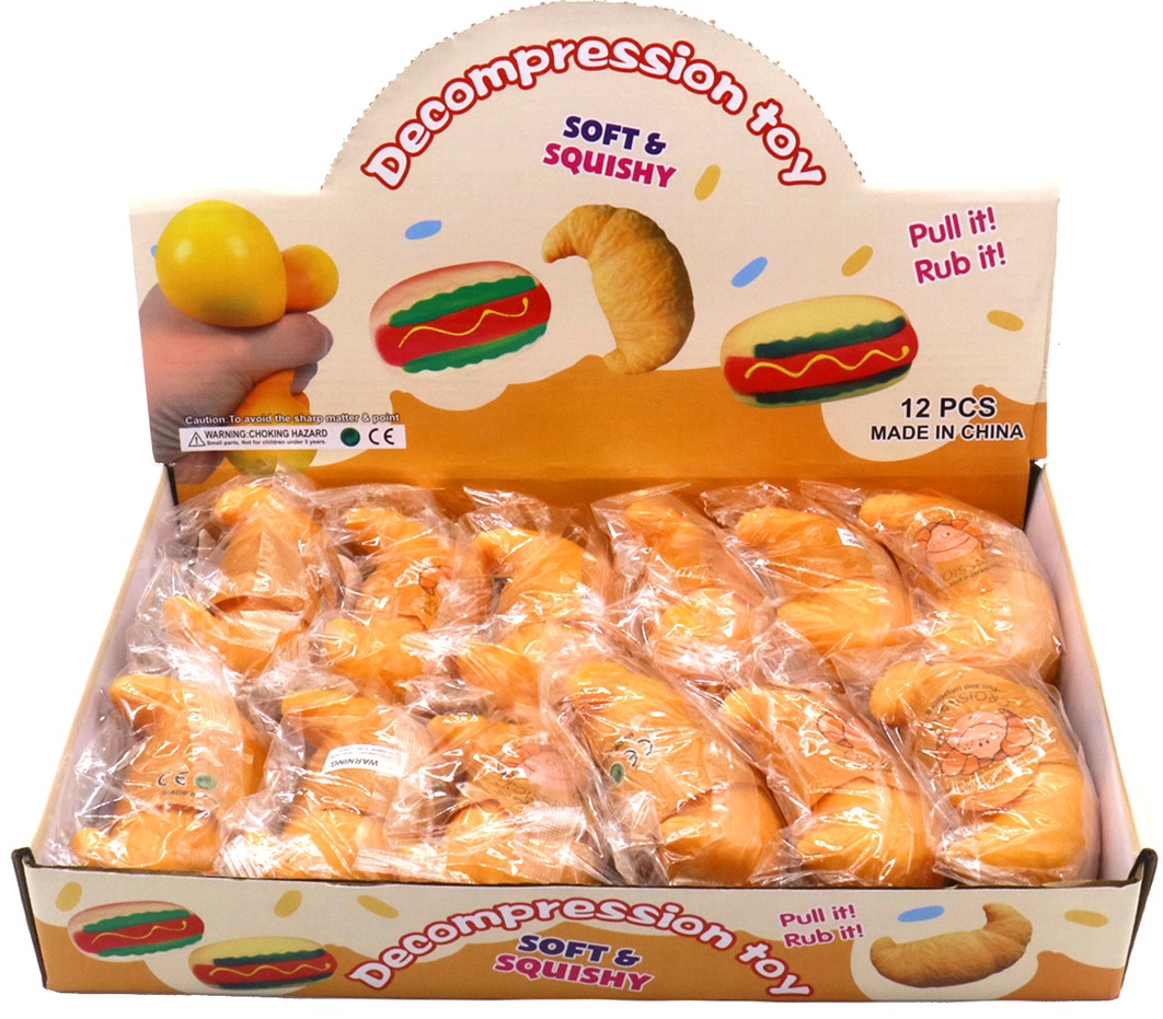 Introducing the Q-C2.2 TOY2535-054 Squishy Croissants – a delightful set of 12 soft, squishy croissant toys that are perfect for stress relief, sensory play, or simply as charming decorative pieces. Each croissant is crafted from high-quality, non-toxic materials, ensuring a safe and enjoyable experience for both children and adults alike.