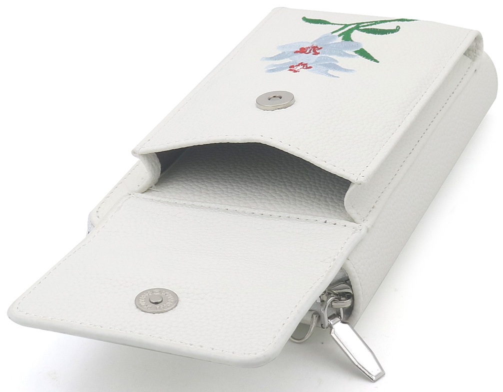 Product information "Q-C8.2 BAG1113-001-2 PU Bag Embroidered Flowers 18x10.5x5cm White"