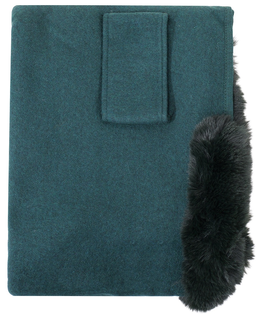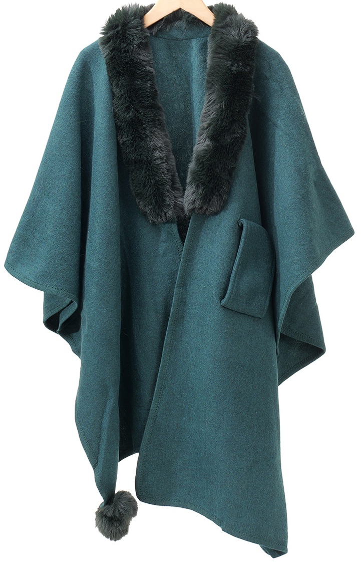 Q-E6.1 SCARF1005-003-5 Luxury Poncho Faux Fur Green
