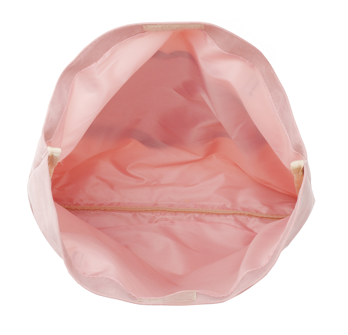 Measuring 37x36cm, it offers ample space for all your essentials, making it perfect for shopping trips, outings, or daily errands. The soft pink hue adds a feminine touch, while the durable construction ensures it can withstand daily use.