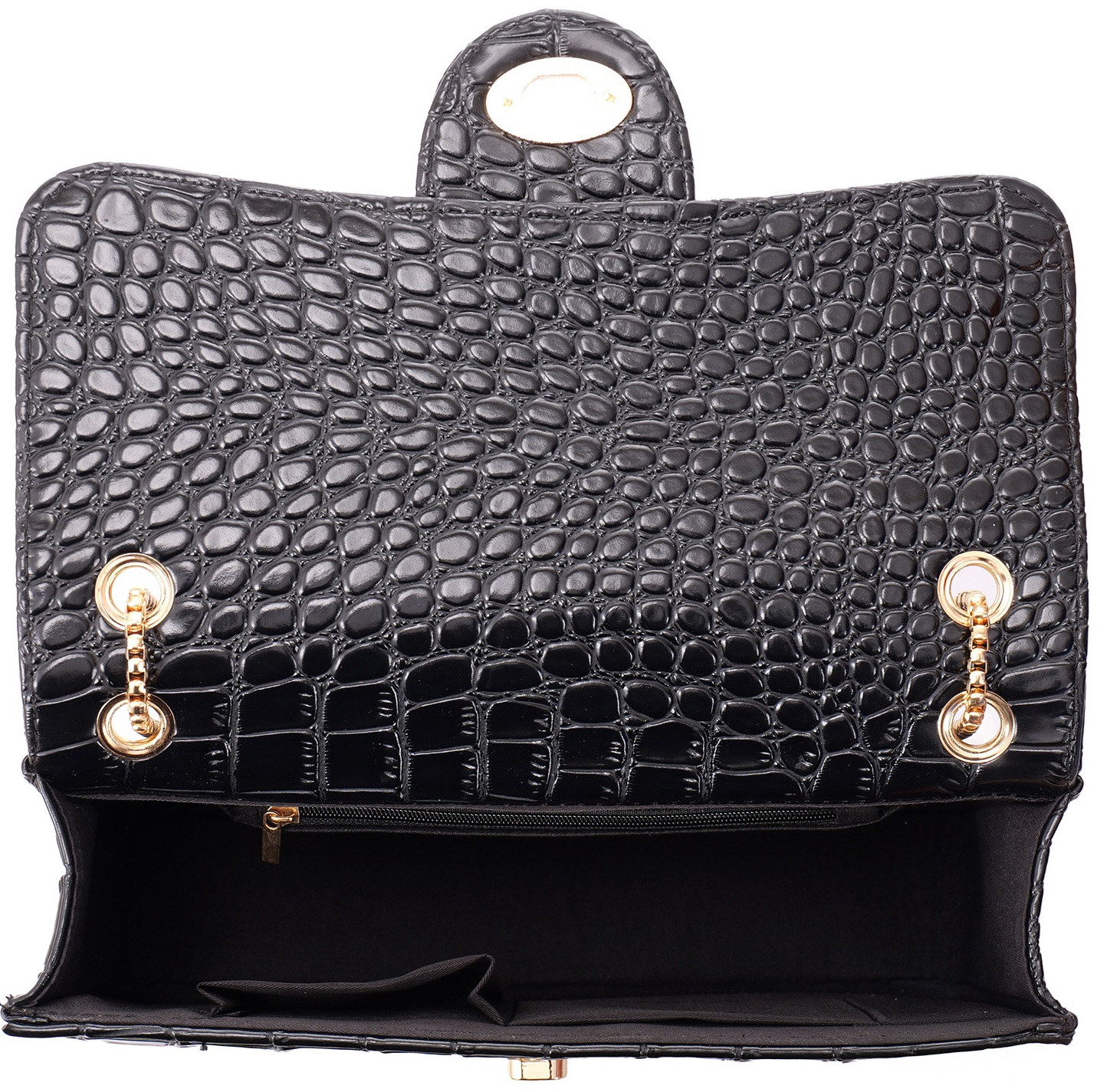 R-E3.2 BAG1117-005-6 PU Bag Faux Crocodile 27x17x7.5cm Black