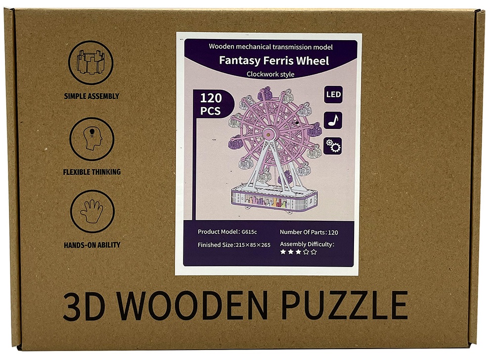Unleash your creativity and embark on a delightful journey with the R-F3.2 TOY1153-002 Wooden 3D Puzzle, featuring a captivating Ferris Wheel design. This intricately crafted wooden puzzle not only challenges your assembly skills but also brings joy to life with its enchanting sound and LED lighting effects. Made from high-quality, eco-friendly wood, this 3D puzzle showcases exquisite craftsmanship, ensuring a stunning visual appeal once completed.