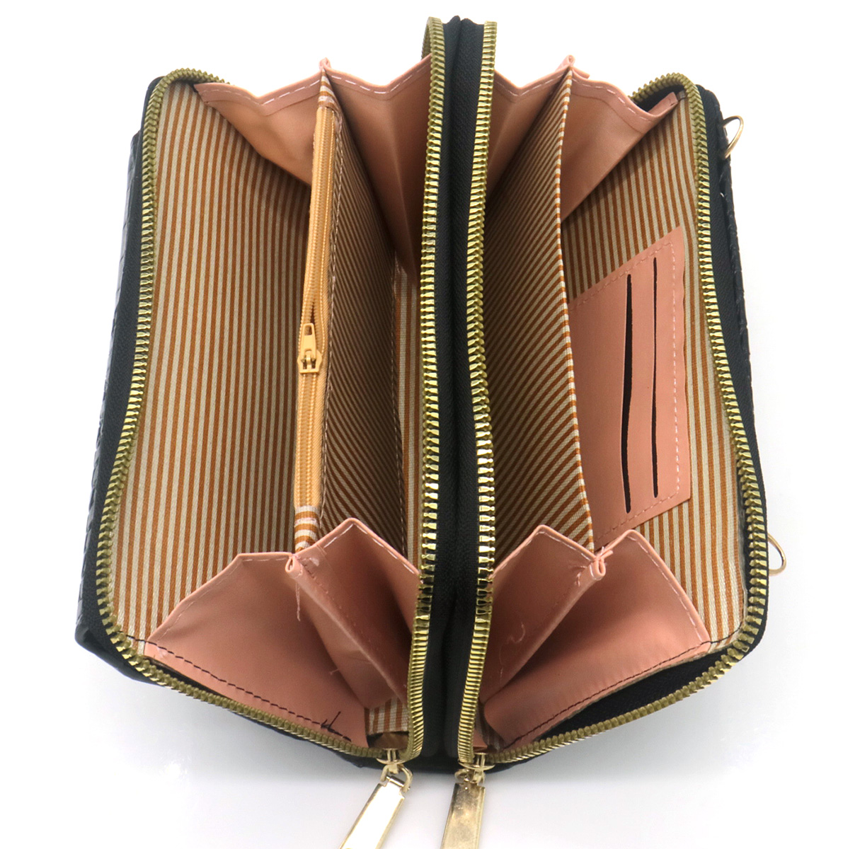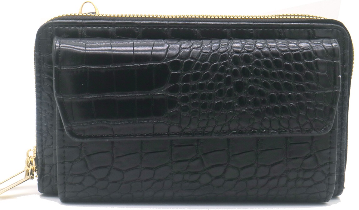R-N7.2 BAG1010-003-1 PU Bag Croco with 10cm Wallet 19x11x6.5cm Black