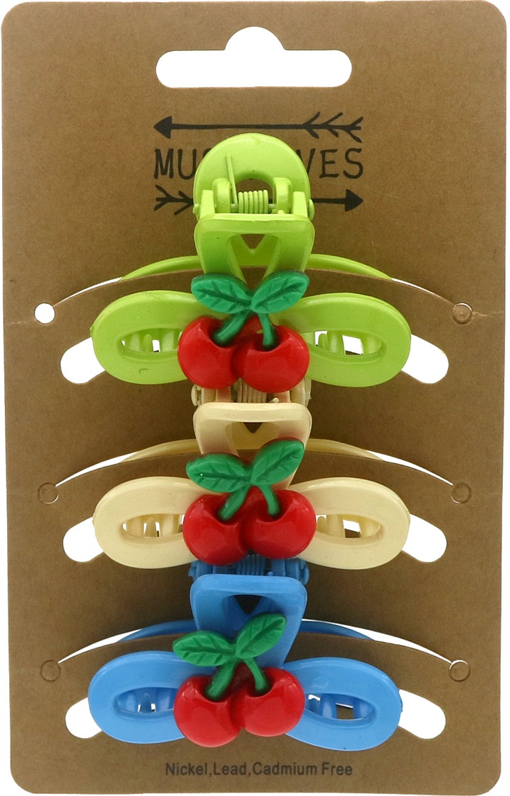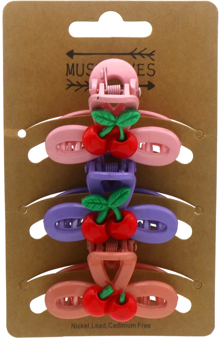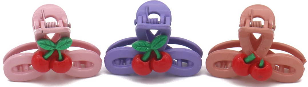 S-B1.1 H1127-002 Hair Claw 4.5cm Cherries Mixed Colors- 3pcs