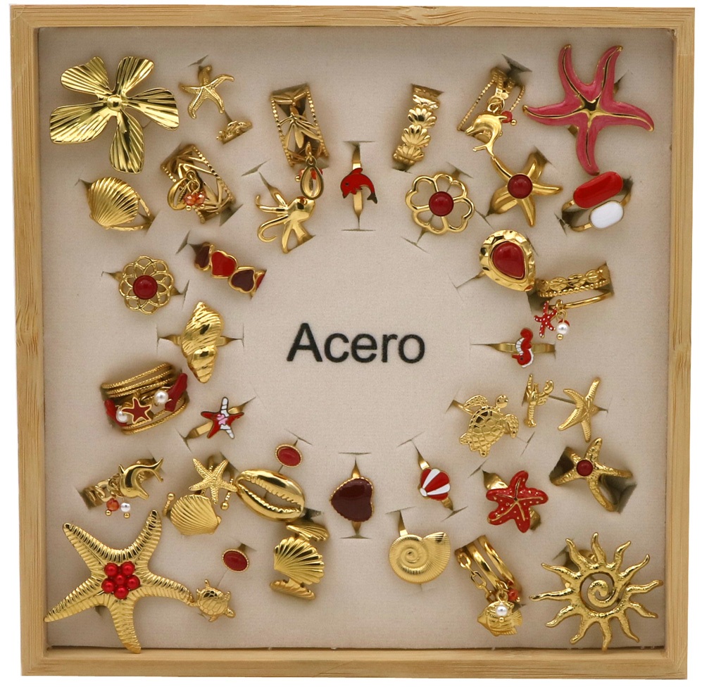S-B7.5 R221-316-5 S. Steel Rings Adjustable in Display - 36pcs Red