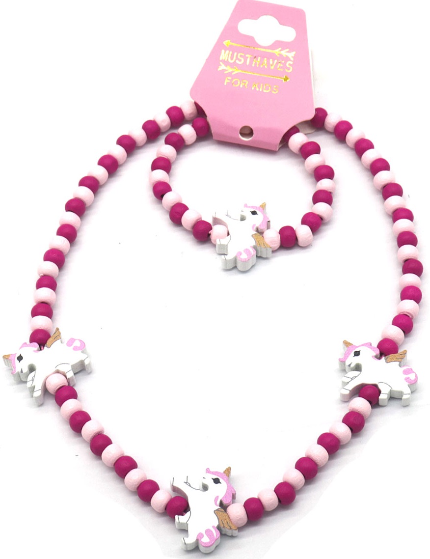 S-D2.4 NB622-004 Kids Jewelry Set Wood Unicorns