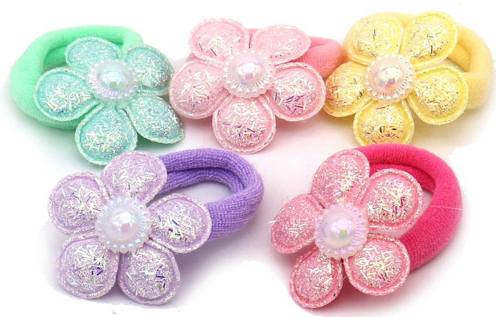 S-E7.4 H1125-003 Hair Elastics Flowers for Kids - 6pcs