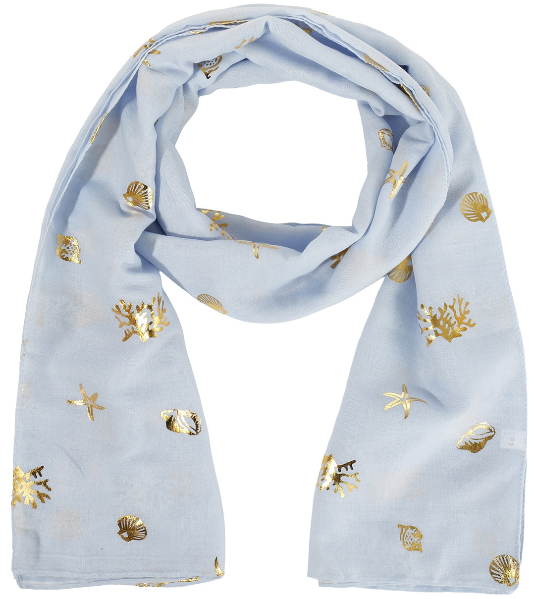 X-N4.2 SCARF1110-002-3 Summer Scarf Shells 180x70cm Blue