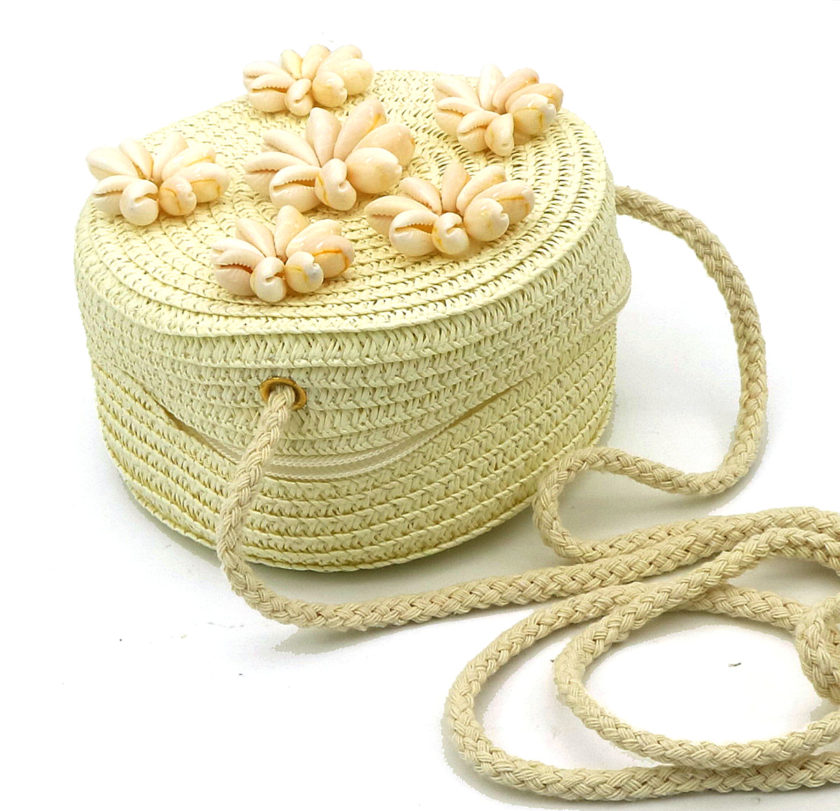 Y‑B2.4 BAG1159‑002 Woven Bag Shells 12 x 6 cm – Mixed Colours – 1 pc