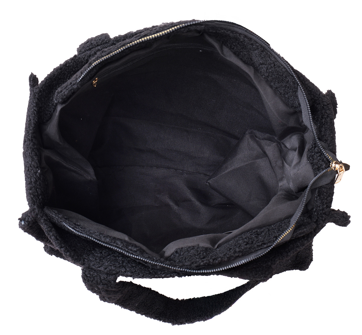 Crafted from high-quality materials, the bag features a chic black teddy fabric that not only adds a touch of elegance but also ensures durability and comfort. The soft texture makes it a pleasure to carry, while the sturdy construction guarantees it can handle your daily needs with ease.