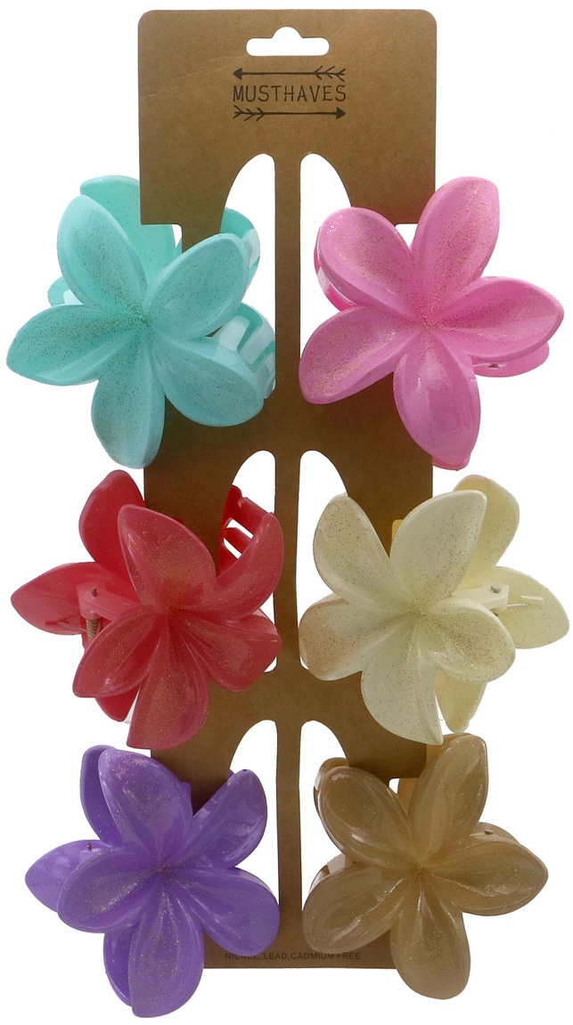 Y-D2.1 H1124-002 Hair Claw 7.5cm Flowers Glitter - 6pcs