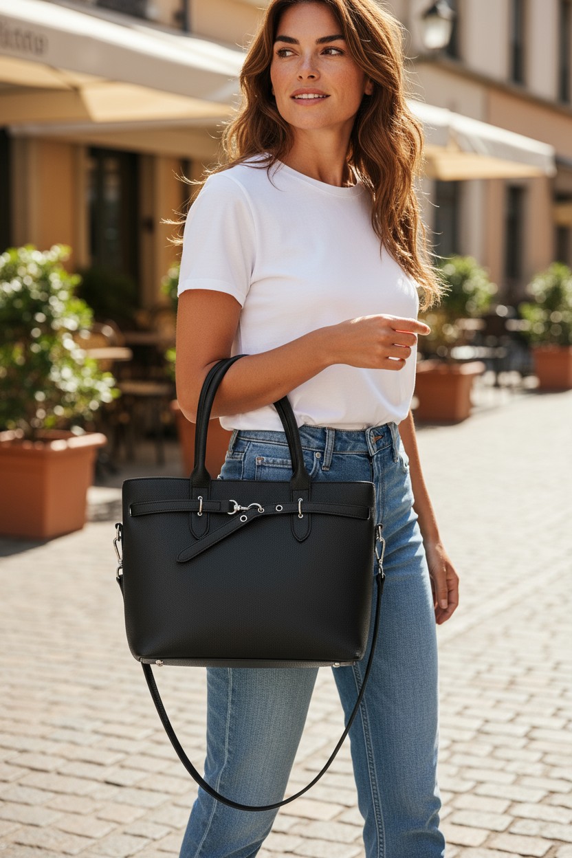 With comfortable handles and an adjustable shoulder strap, this bag offers multiple carrying options for your convenience. The lightweight construction ensures ease of use, while the chic black finish adds a touch of elegance to any outfit.