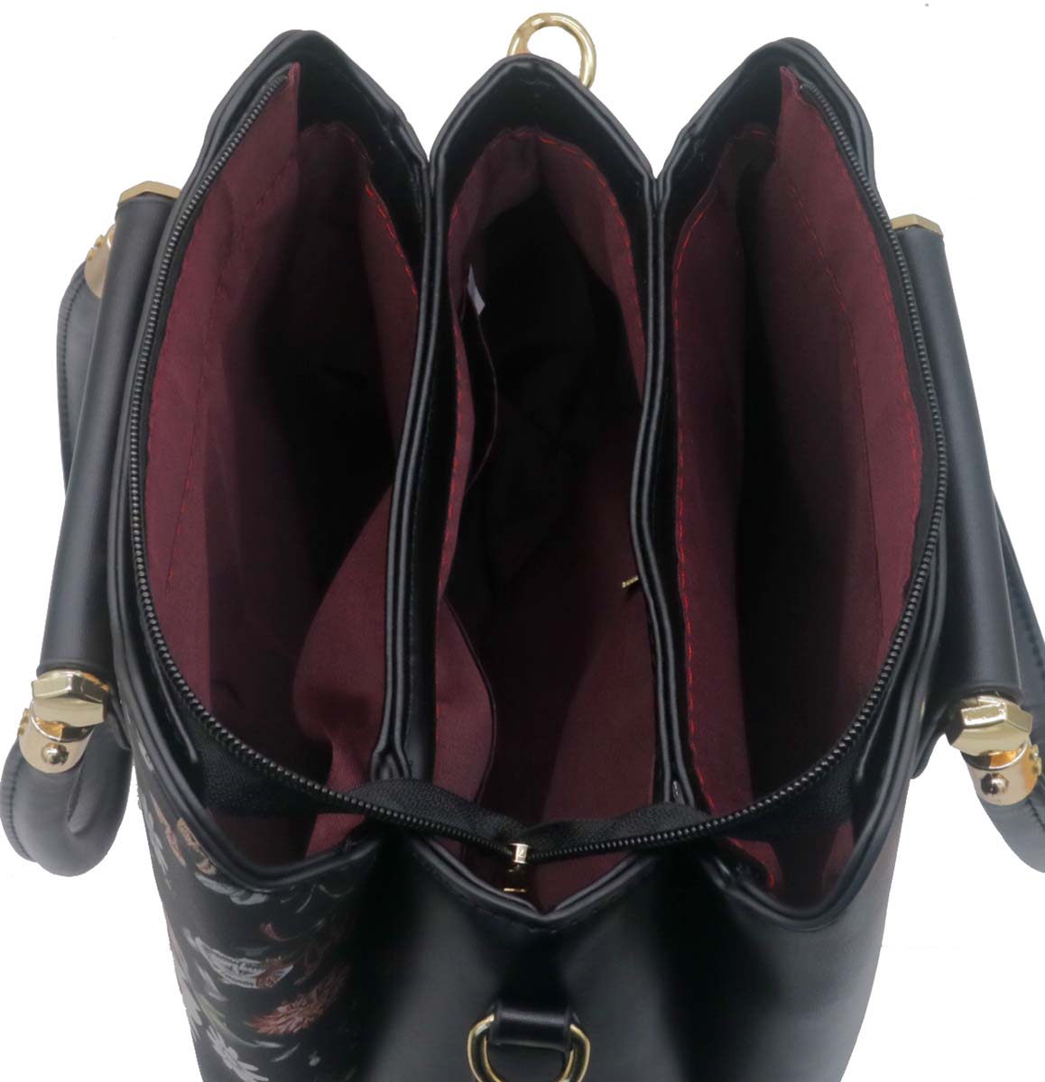 Z-C3.1 BAG734-002 No. 1 PU Bag Floral 30x24x12cm Black