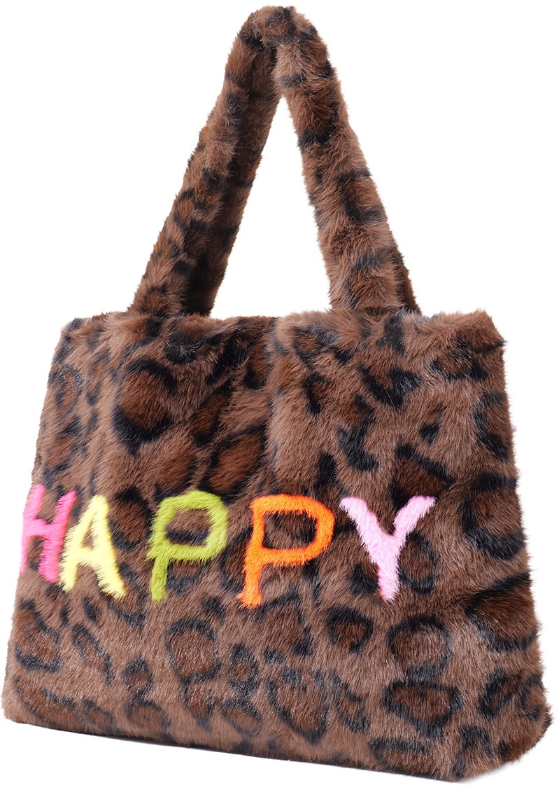 Z-C6.2 BAG1013-002-2 Fluffy Shopper Bag Leopard HAPPY 45x33cm