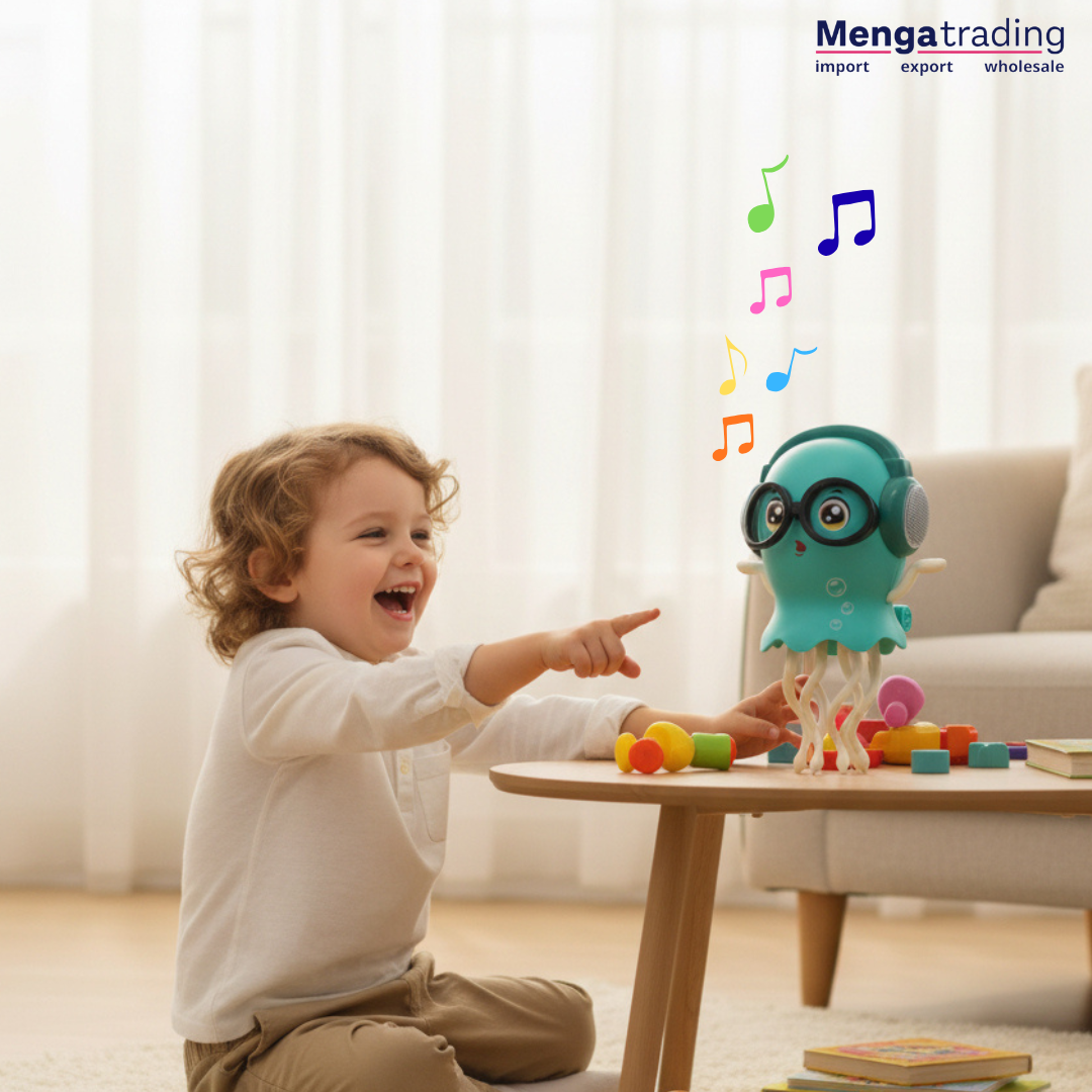 Equipped with dazzling LED lights, this jellyfish illuminates the room with a kaleidoscope of colours, enhancing the playful atmosphere. The built-in music adds an extra layer of fun, encouraging little ones to dance and move along with their new aquatic friend.